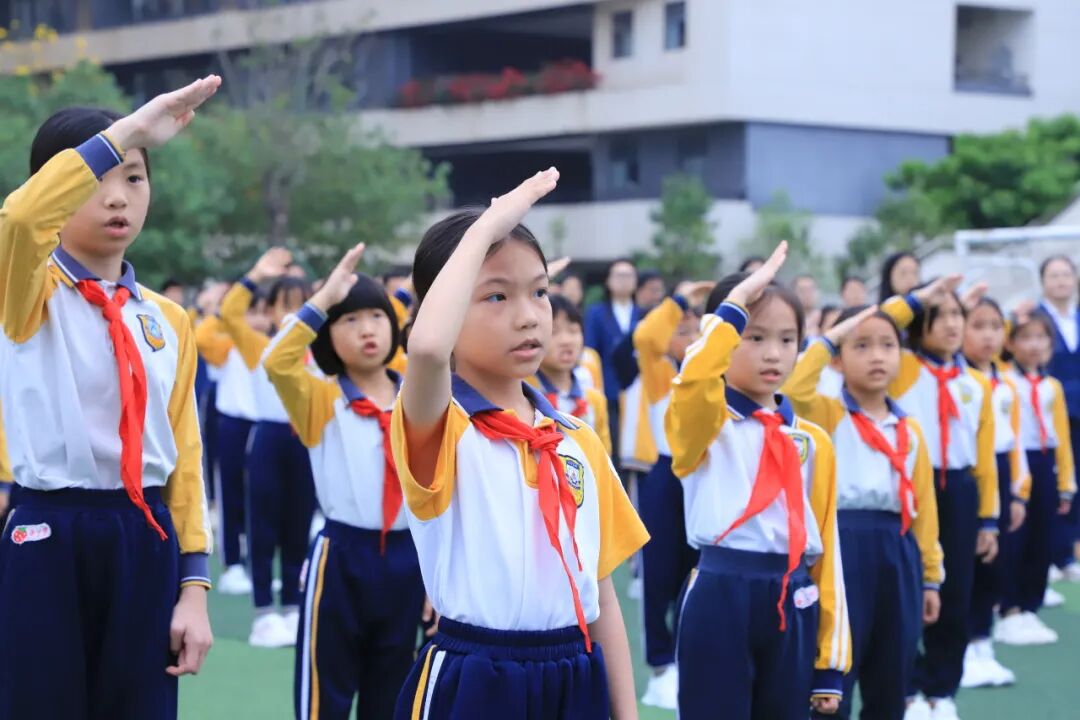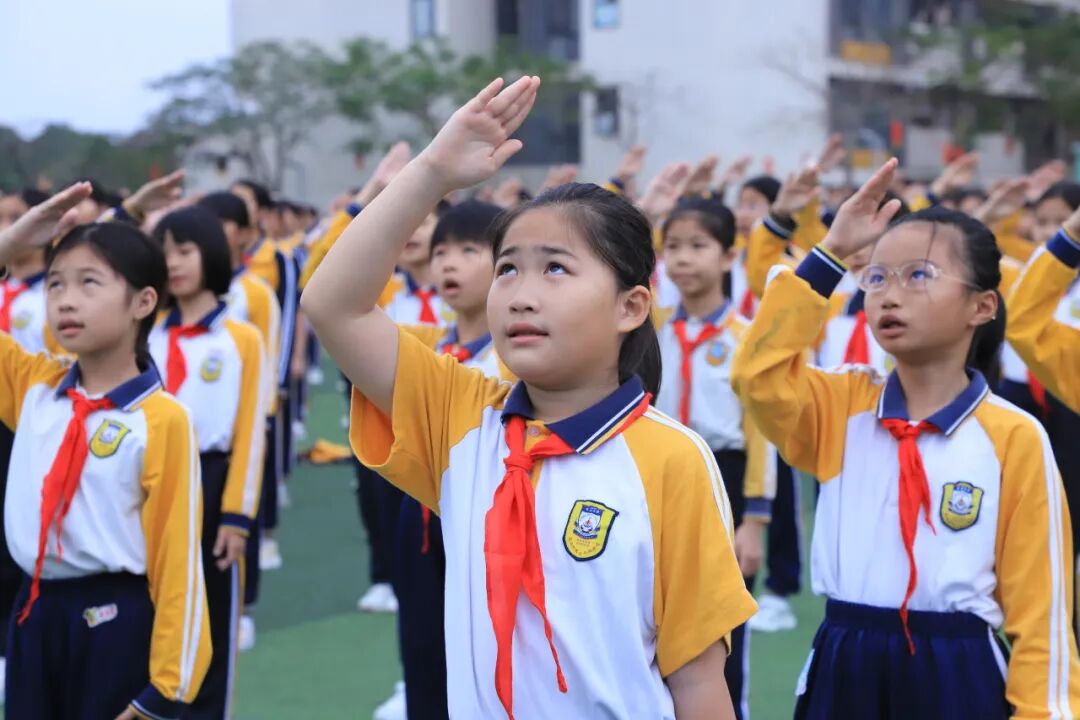 与此同时,电白华赋小学部全体师生齐聚运动场,隆重举行新学期开学典礼,共同迎接崭新而美好的学习生活。典礼由庄严的升旗仪式拉开序幕,当雄壮的国歌奏响,五星红旗冉冉升起,爱国之情在每个人心中油然而生,为新学期奠定了庄重而奋进的基调。