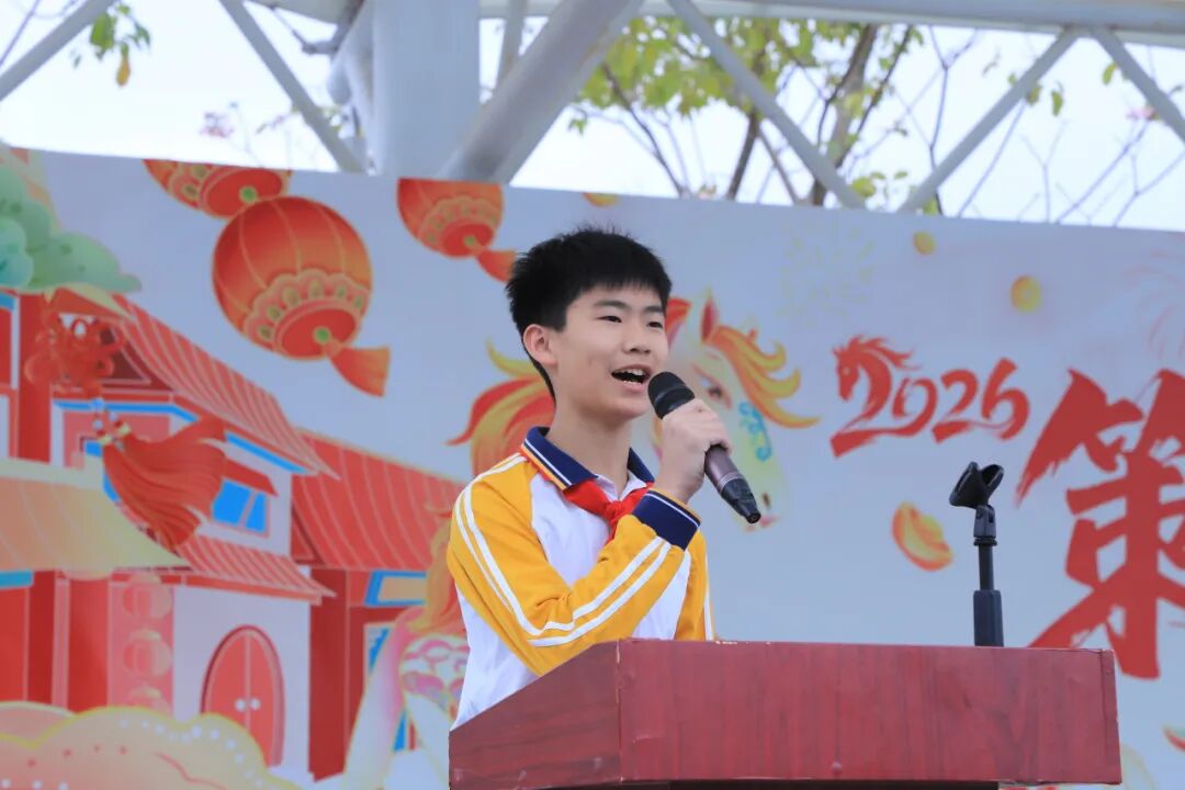 中学部执行校长石燕光致辞,围绕“科技创新”与“少年担当”,为全体师生送上新学期的期许,鼓励同学们厚植家国情怀,树立科技报国理想,以少年之智创科技之新,以赤子之心筑强国之梦,在马年里跃马扬鞭、奋勇争先。