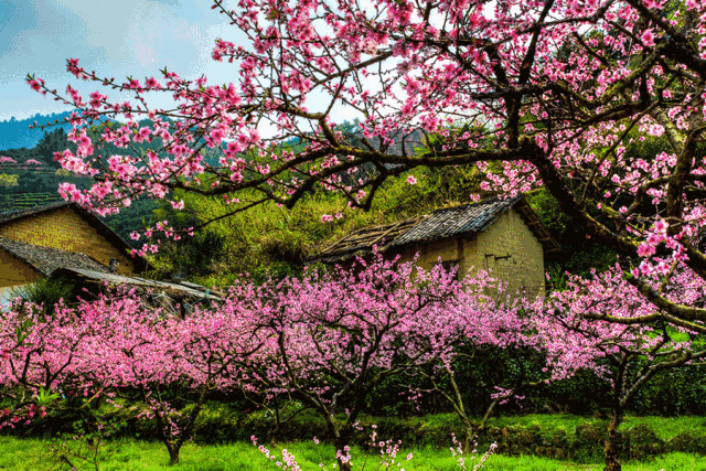 客栈本身就在九峰花海核心区,推开窗就是漫山遍野的桃红李白。当漫山遍野的桃花盛开,入住其中,你无需出门,只需推开窗户,便能将那无敌花海尽收眼底。