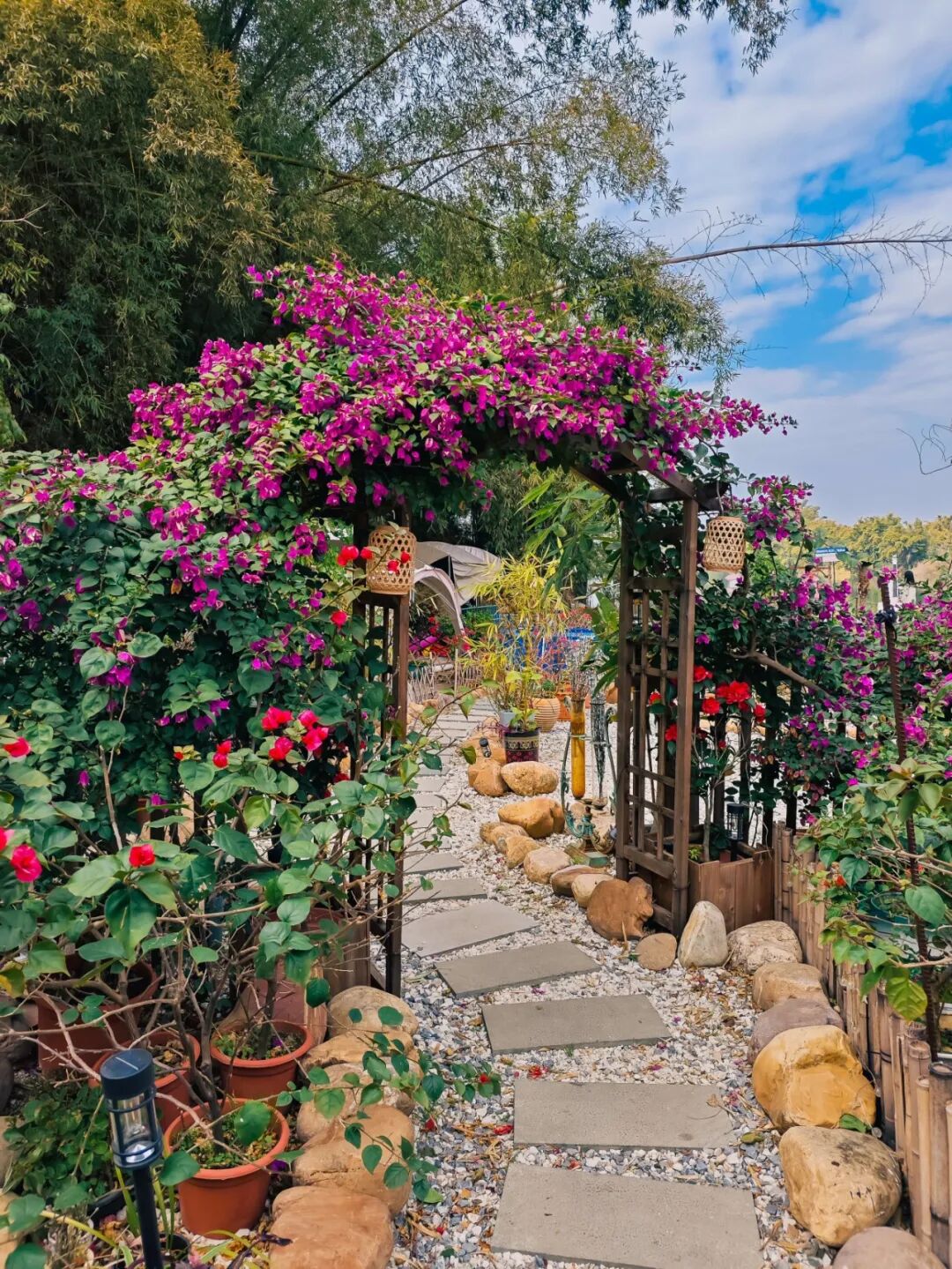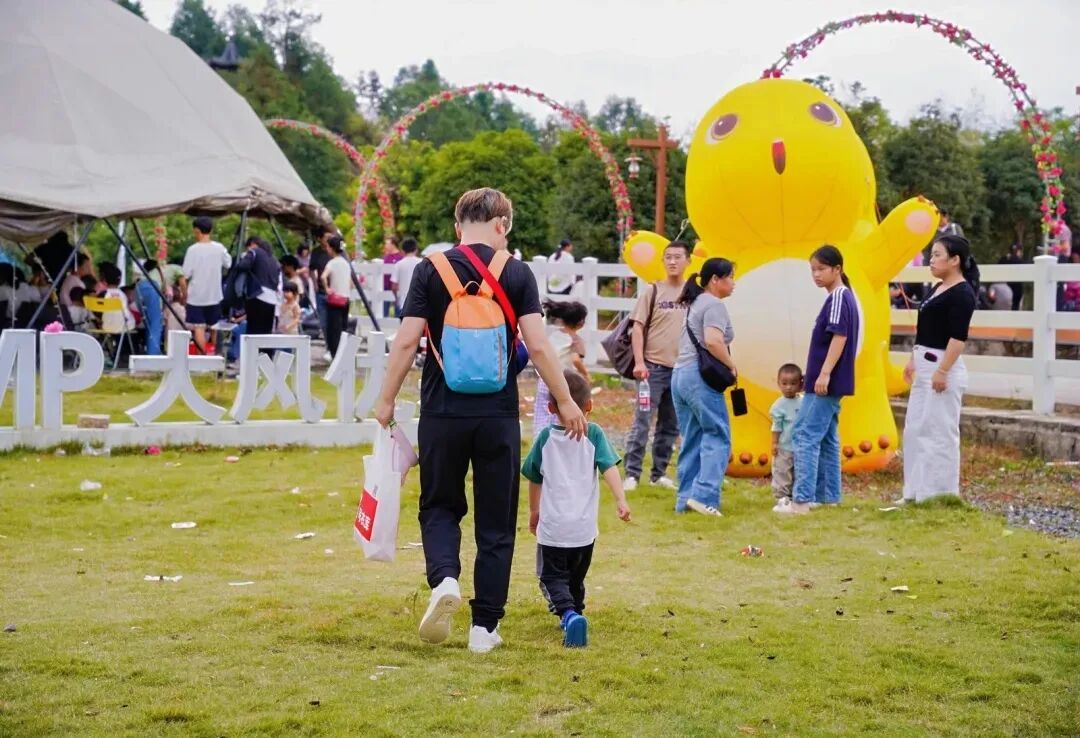 花海中还设有彩虹秋千、心形走廊、气球飞屋等互动式景观,非常适合拍照打卡!现场还能偶遇限定咖啡小摊,可以边赏花边享受咖啡,惬意十足!