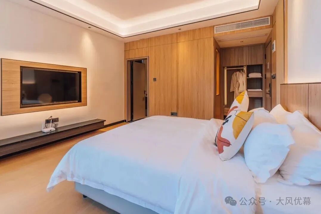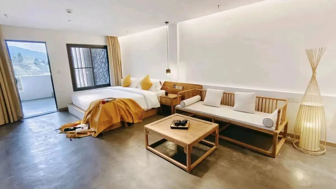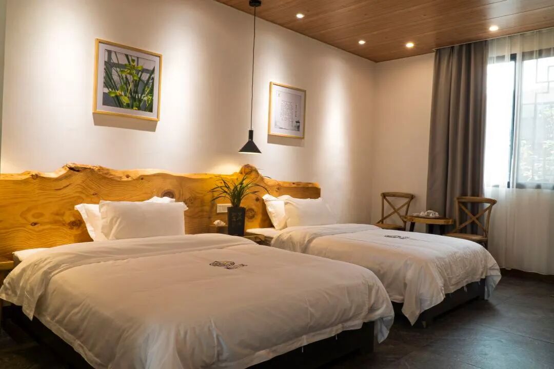 客房内是素雅的原木风格,推开窗便能看到院落中的一片绿意,让人瞬间放松下来。