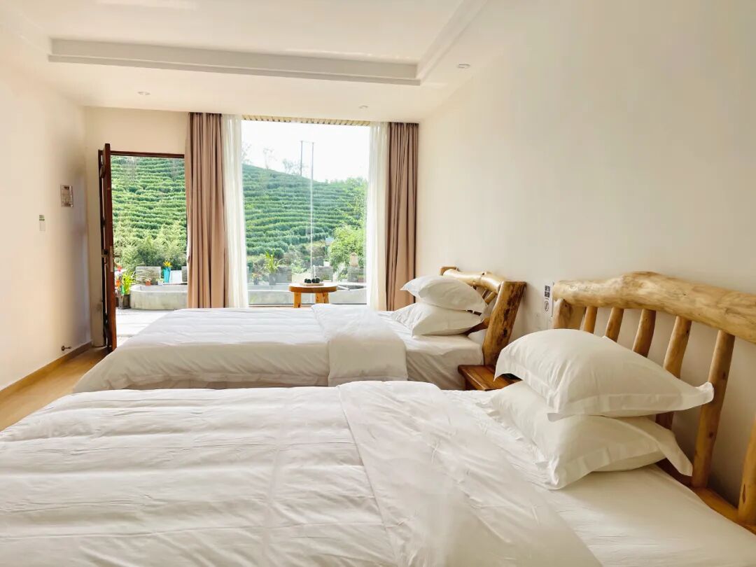民宿茶园围绕,茶香弥漫,提供茶叶采摘、手工制作等体验。有兴趣的朋友可以带上家人朋友,来这里品茗、赏景,睡在茶香中~