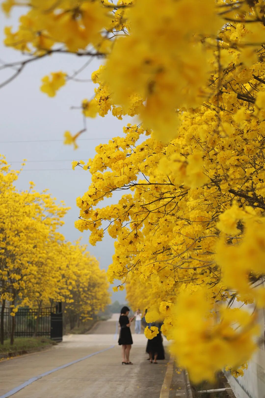 这里是翁源黄花风铃木的“天花板”!两侧的黄花风铃木绵延成金色隧道,阳光透过花瓣洒落,仿佛置身童话世界,随手一拍都是春日大片。记得穿上浅色衣服或汉服更出片哦!