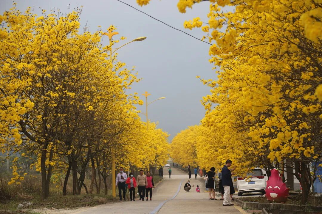 还可前往翁源粤台农业合作试验区(金桂路),欣赏正值花期的“黄金雨”黄花风铃木。
