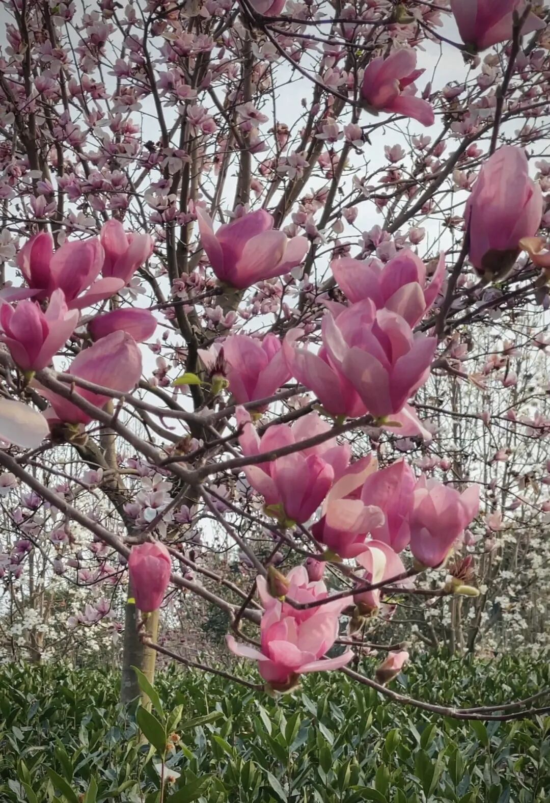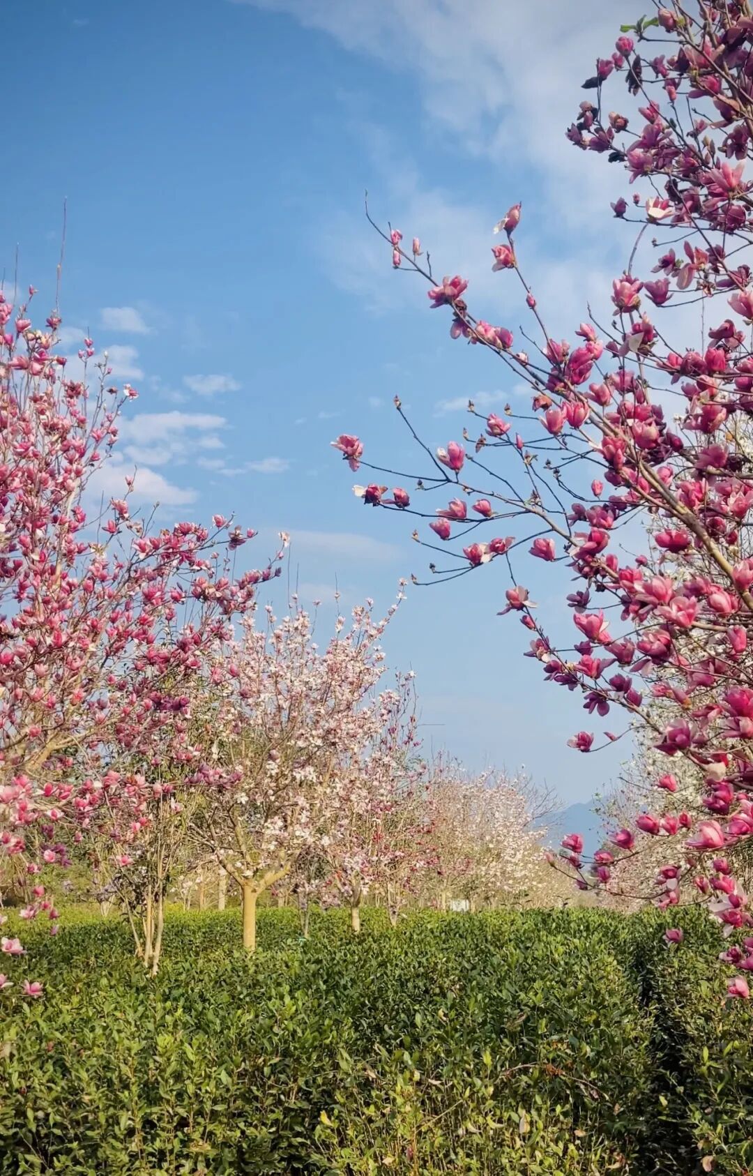 漫步茶园小径,还有洁白玉兰花缀满枝头,随手一拍就是治愈大片。