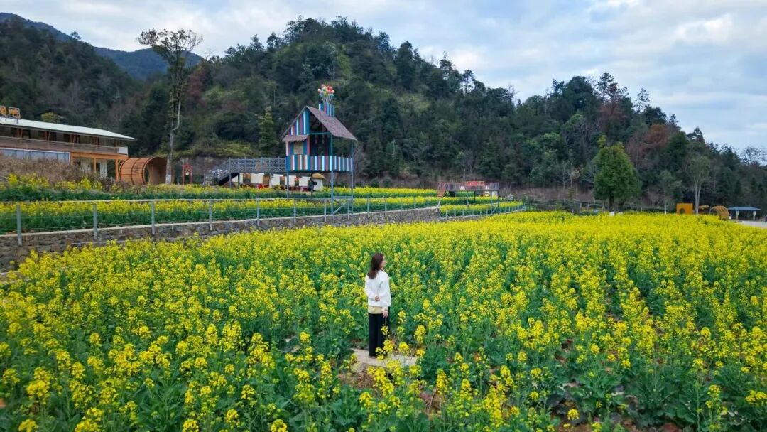 民宿附近水口村千亩油菜花田已进入盛花期,步行可达!