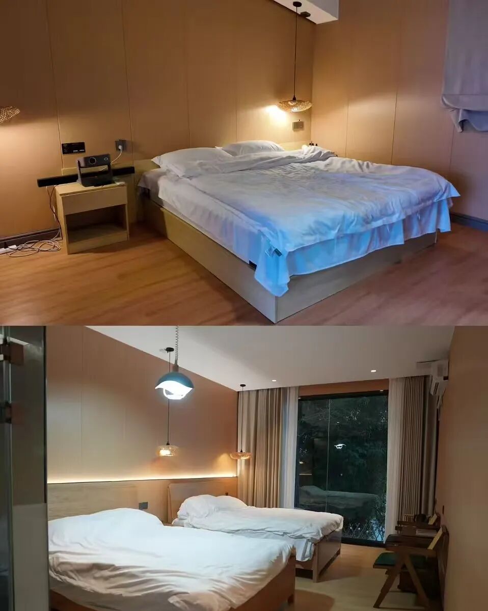 这里一年四季,各有风情:春看桃花夏摘果,秋赏银杏冬观雾凇。民宿装修巧妙地将客家人传统建筑文化与现代元素相融合。踏入其中,仿若能触摸到岁月的痕迹,感受到那份浓浓的乡土情怀。