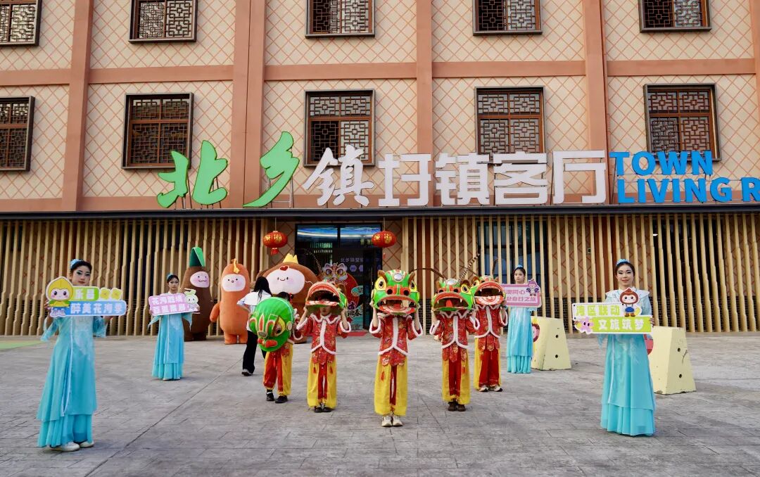 下午6时,澳门宾客刚抵达目的地,就被热烈的迎宾氛围包围:迎宾道上,乐昌青蛙狮表演队以传统喜庆的非遗表演传递乐昌人民的诚挚心意;身着盛装的姑娘们列队挥手,甜美的笑容如春风拂面;憨态可掬的乐昌“四宝”人偶吸引了澳门游客纷纷驻足合影,充满仪式感的接待让远道而来的客人倍感温暖。