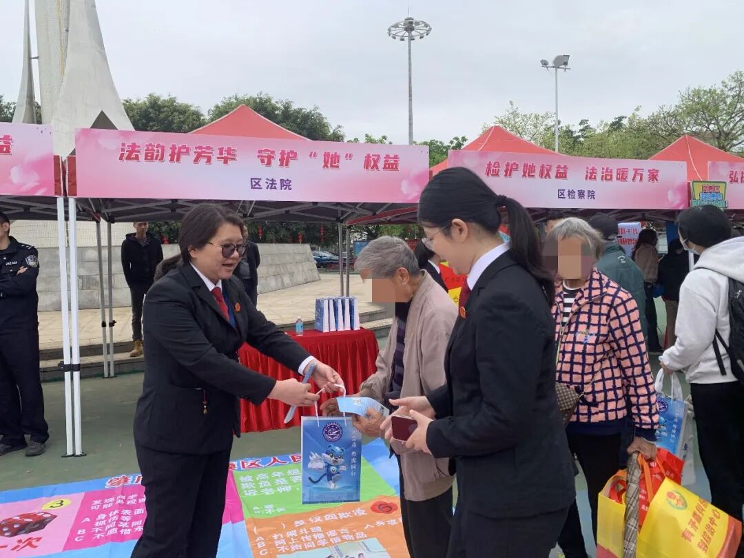 近日,高要区白土镇、新桥镇开展“维护她权益 幸福千万家”妇女维权周普法宣传活动,以“游戏+普法”形式开展互动,围绕产假待遇、职场歧视、家庭暴力等热点问题答疑并赠送礼品。工作人员在咨询台解读《妇女权益保障法》《反家庭暴力法》《民法典》,发放宣传资料、结合案例普法,提升妇女法治意识与维权能力。