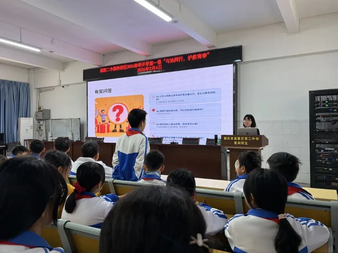 民事审判庭法官以法治副校长身份走进高要区第二中学星科校区,开展 “与法同行,护航青春” 法治课。紧扣《妇女权益保障法》,结合视频与鲜活案例,讲解女性防骚扰、反家暴等知识,引导学生认清行为边界、掌握维权方法。