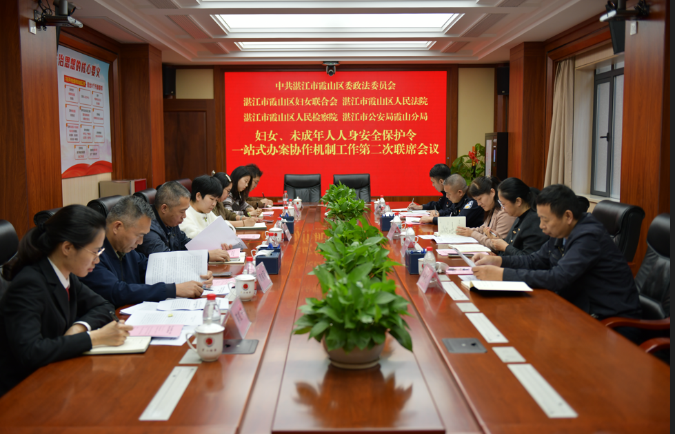3月4日,霞山区检察院牵头区委政法委、区法院、霞山公安分局、区妇联等成员单位召开妇女、未成年人人身安全保护令一站式办案协作机制第二次联席会议。会上,各单位围绕执法规范、协同流程优化、被家暴妇女综合救助等突出问题深入研讨,研究部署下一阶段工作重点,要求强化履职担当、深化协同配合、健全救助体系、强化普法宣传,打破信息壁垒,构建全方位、多层次的妇女儿童权益综合保护格局,为后续权益保护工作开展奠定坚实制度基础。