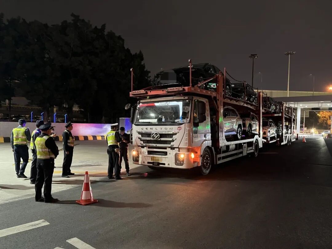2月25日晚至26日凌晨,执法人员在天河区机场第二高速奥体站附近查获一台涉嫌超规格装载的轿运车。该车从南沙区出发,途经番禺区及新光快速、环城高速等路段,试图绕开执法检查,最终在布控点被依法查处。经现场核查,该轿运车违规装载某品牌新车10辆。目前,执法人员已依法将该车移交公安交管部门作进一步处理。