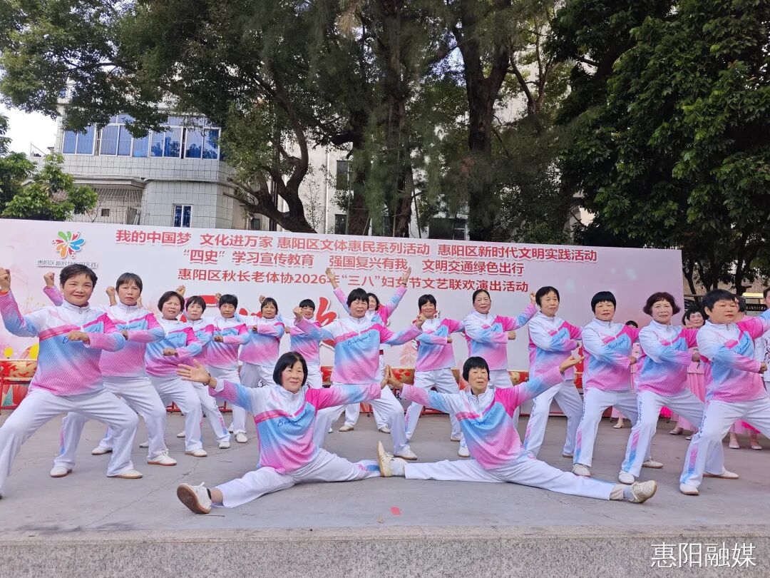 3月6日上午,惠阳区秋长老年体育协会2026年“三八”国际妇女节文艺联欢演出顺利举行。本次活动紧扣“我的中国梦·文化进万家”主题,深度融入惠阳区文体惠民系列活动与新时代文明实践,成为展现中老年女性风采的欢乐舞台。