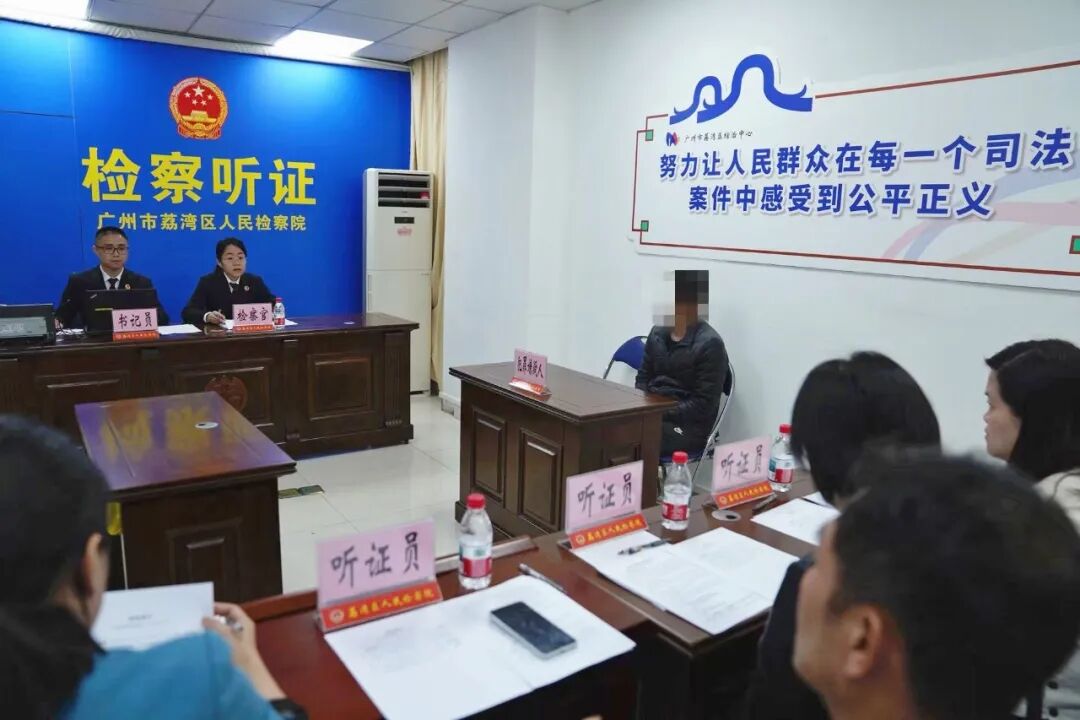 为深入践行新时代“枫桥经验”,推动检察履职与社会治理同向发力,近日,广州市荔湾区人民检察院将检察听证“搬”进区社会治安综合治理中心,对2宗拟作不起诉的轻微刑事案件进行公开听证。听证会邀请人大代表、综治中心工作人员担任听证员,人民监督员全程参与监督,区委政法委代表到场旁听。