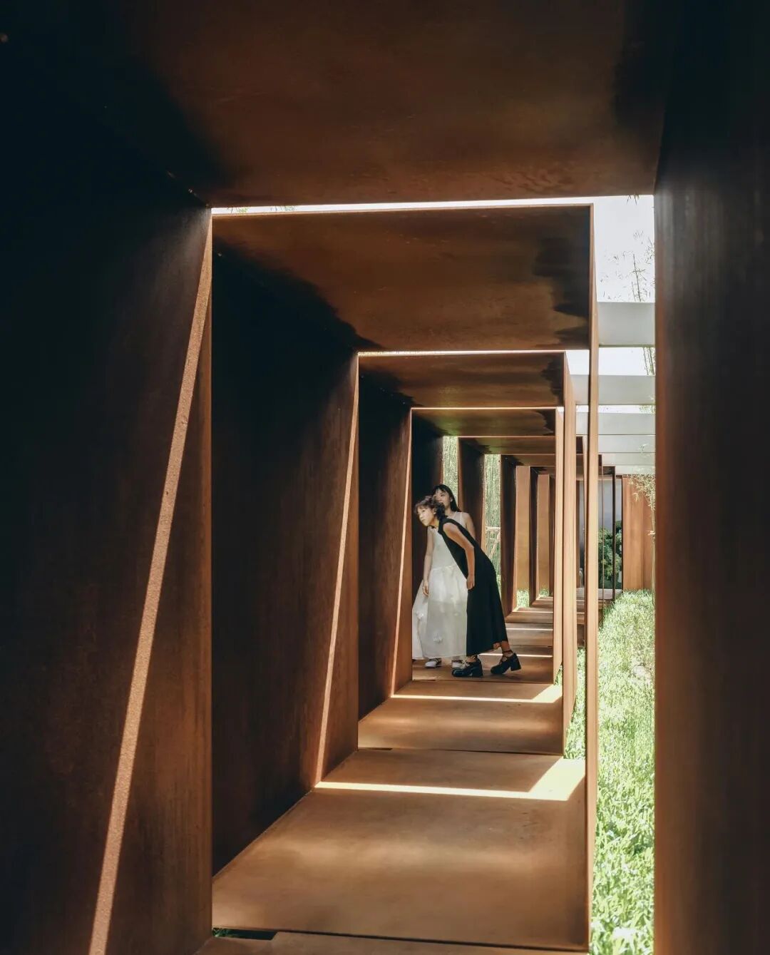 廊道装置平行错位排列,步入其中瞬间能感受到光影的魅力,若隐若现的竹林美景,等待着我们去探索~