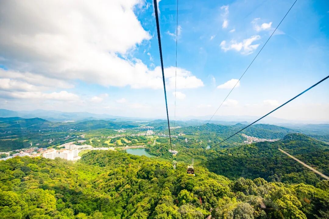索道搭配绿色山景简直是出片利器,从朱明洞景区乘坐索道缆车,在缆车里以窗外绵延的山脉为背景,拍一组“空中旅行”大片。