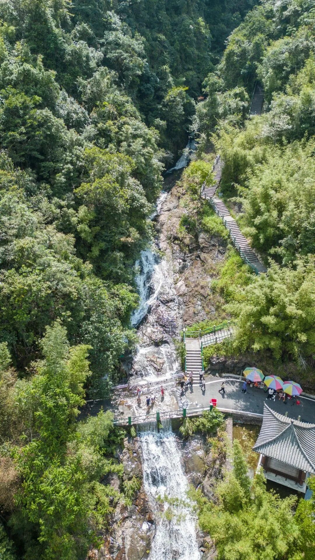 作为景区的核心景点,其山峦叠翠、瀑布飞流的景象是拍摄的绝佳选择,可以在这里拍出”氧气感“户外大片。