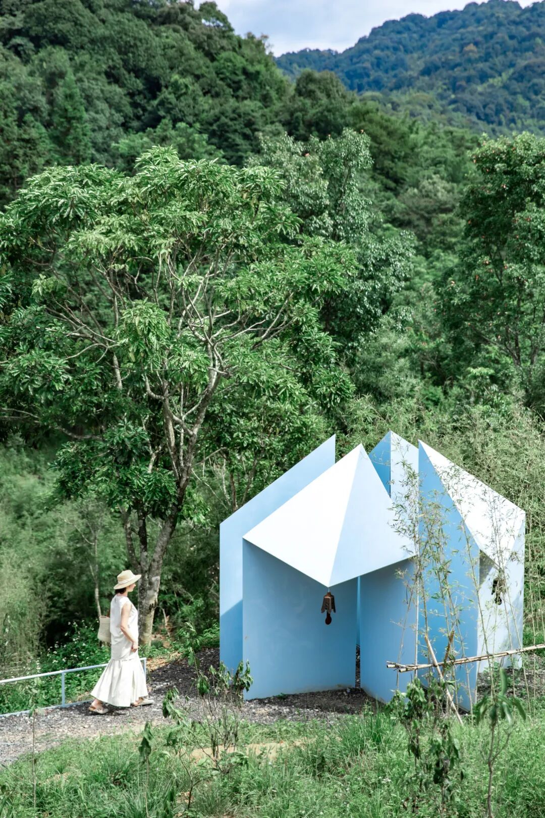 “茶饮小屋与溪中步石,尽享山野惬意”