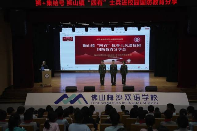 3月13日,南海区狮山镇退役军人志愿服务品牌活动——“四有”优秀士兵进校园国防教育主题分享会走进梅沙双语学校。三位2026年春季光荣退役的“四有优秀士兵”刘檄龙、林韫钰、梁植键带着军营中的热血故事,与师生们面对面交流。这已是该系列活动的第十场。