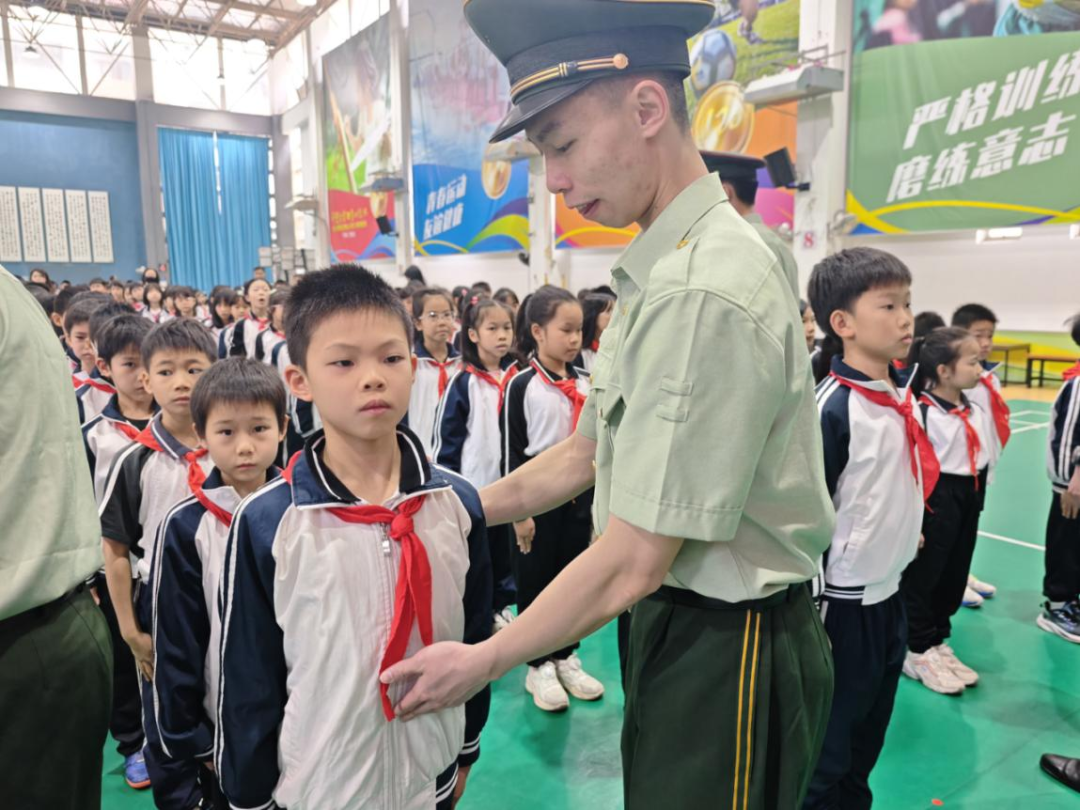 当天下午,退役军人组成的队列迈着铿锵步伐走进校园。擒敌术展示环节,直拳摆拳虎虎生风,孩子们瞪圆双眼,惊呼连连。在西山小学,退役军人手把手纠正孩子们的军姿细节,退伍军人代表曾永豪结合军旅生涯,为孩子们送上饱含深情的寄语。两所小学分别向大良街道退役军人服务站、爱国拥军促进会及人民武装部递上锦旗,见证着军民同心共育爱国新苗的生动实践。