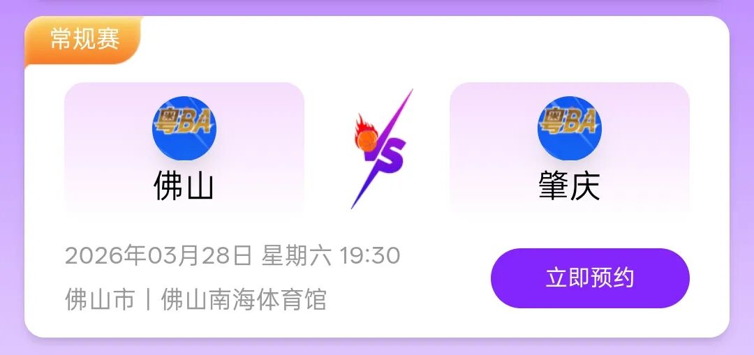 肇庆队将在⛹️佛山南海体育馆对战佛山队。