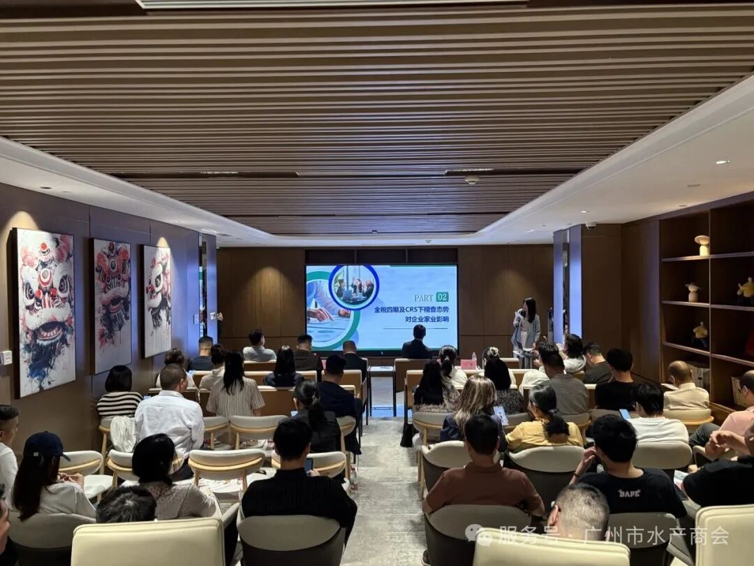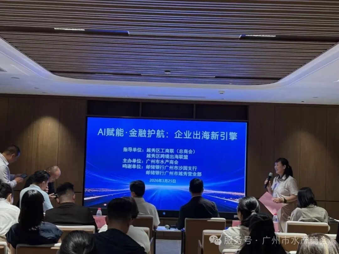 2026年3月25日,在越秀区工商联(总商会)和越秀区跨境出海联盟指导下,由我会主办的科技引领,金融护航——AI赋能·金融税务助企出海暨“越秀跃全球”跨境经营实务专场活动在越秀区邮政储蓄银行广州分行举行。本次活动围绕科技创新与金融支持,助企业提升跨境经营能力、推动优质产品“走出去”,实现国际化发展。出席专场的领导及嘉宾有:越秀区工商联三级调研员任文生,广州市水产商会会长郑少逵、广州市水产商会党支部书记王挺,广东省冷链协会,广州茶业协会,广州玩具和礼品协会,大塘街道商会,越秀区饮食商会,广州肉菜市场协会,广州连锁经营协会等各商会秘书长及企业家60多人参加。