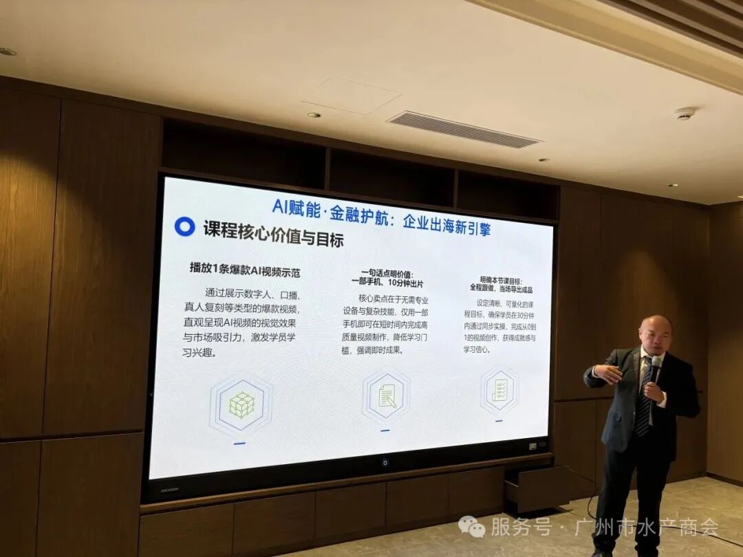 在AI赋能视频制作实操环节,我会会员企业广州市唐森贸易有限公司总经理温耀祥演示利用主流AI工具从剧本生成到短视频输出的过程培训,让参会企业掌握“零基础”现在学懂制作出一个个有故事有内涵的视频短剧,视频制作技能,激发企业宣传提升品牌。