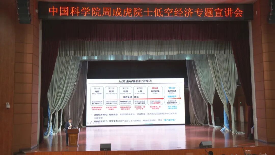 随后,中国科学院院士周成虎就低空经济作专题宣讲,分享低空经济领域前沿理念与先进经验,为吴川低空经济发展指明战略方向、提供专业指导。