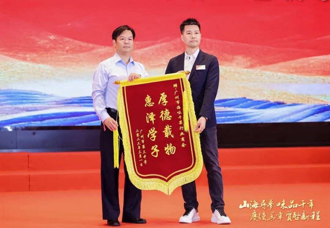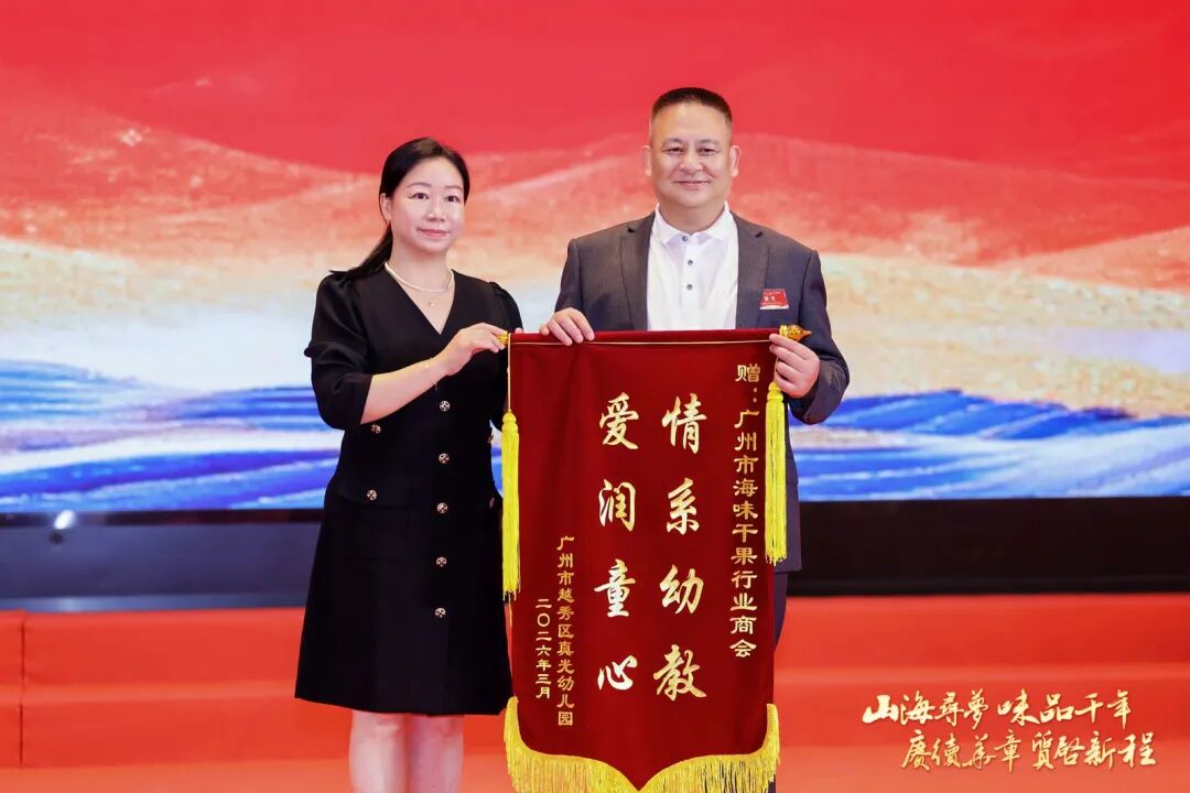授牌仪式后,人民街道办事处、广州市第三中学、真光幼儿园分别为商会赠送锦旗,感谢商会在区域发展、民生服务、教育公益等方面的持续付出,见证了商会与社会各界同心携手、共促发展的深厚情谊。广东省水产商会、广州市工商联书画艺术协会、广州市青年商会、汕头市鱼胶海味协会、茂名电白区海产品干果商会、香港海味杂货商会有限公司等多家兄弟商会也现场赠礼,彰显了行业间的互联互通、共生共荣。