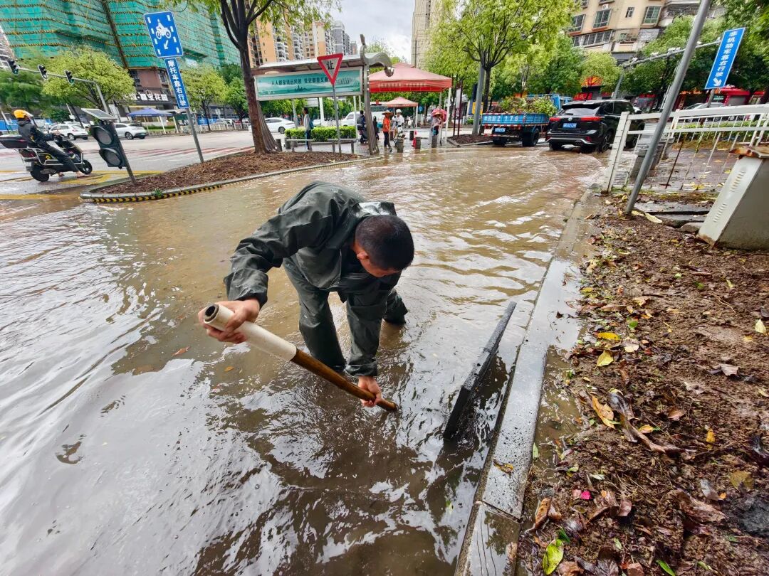 2026年3月31日下午,清城区东城街道海逸路,工作人员疏通排水口。清远日报记者 刘淑芳 摄