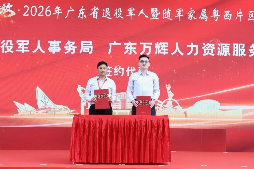 仪式上,退役军人就业创业代表、广东玛顺科技有限公司总经理王磊现场分享军旅生涯与职场追梦历程,激励在场退役军人永葆军人本色、勇闯职场新赛道。云浮市退役军人事务局与广东万辉人力资源服务有限公司签订就业合作协议,政企携手拓宽就业渠道,为粤西片区退役军人提供持续稳定的优质岗位供给。