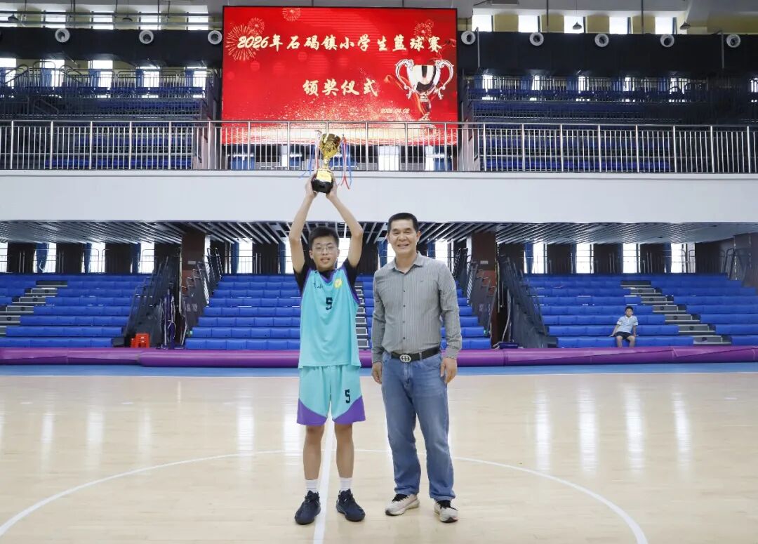 颁奖仪式上,镇教育管理中心相关负责人为一、二、三等奖获奖队伍、最有价值球员尹安杰及袁崇焕小学、东风实验学校两个优秀赛区颁奖,同时为前八名球队的教练员授予优秀教练员称号。冠军球队袁崇焕小学,将代表石碣镇出征2026年东莞市小学生篮球比赛,续写少年篮球荣光。
