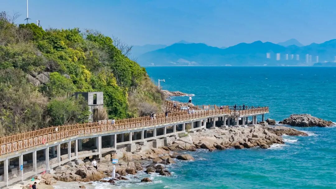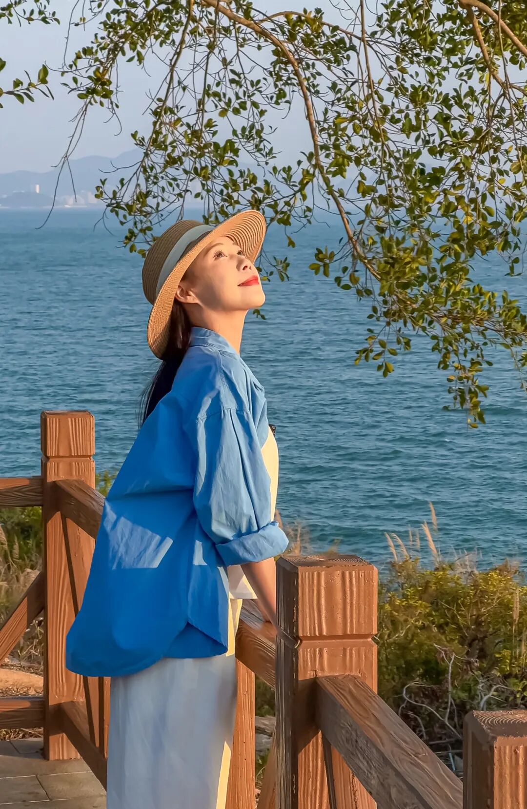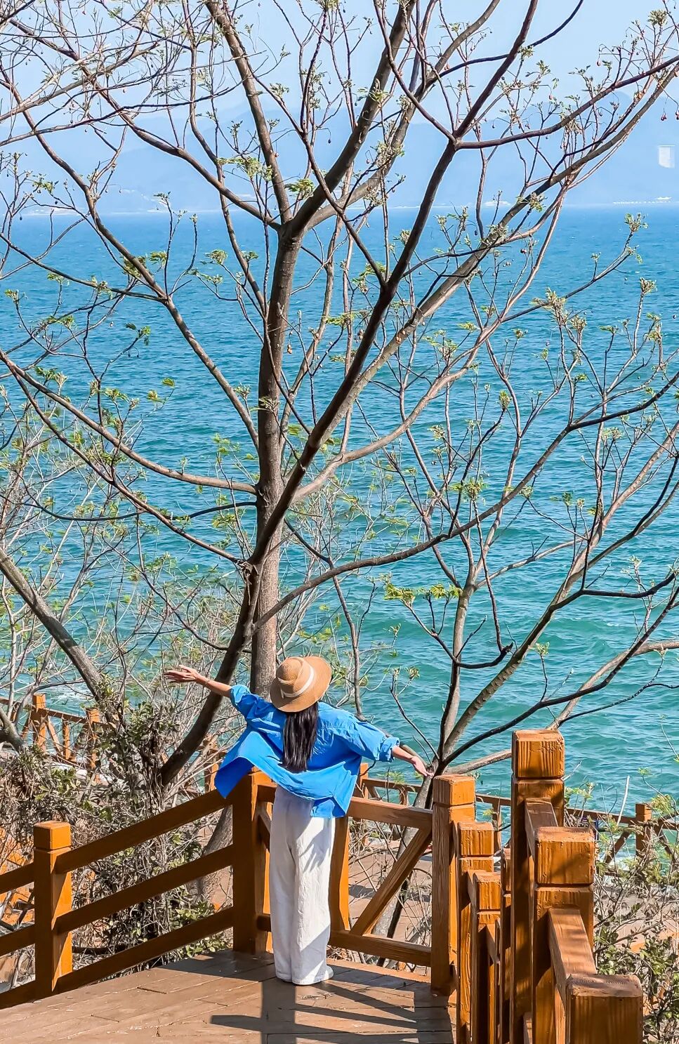它一侧是青翠山林,一侧是蔚蓝大海,无论是步行还是骑行,都可以感受到阵阵海风和耳畔清脆的鸟语。这个季节过去,温度刚刚好,还可以打卡电视剧《追光的日子》同款机位!