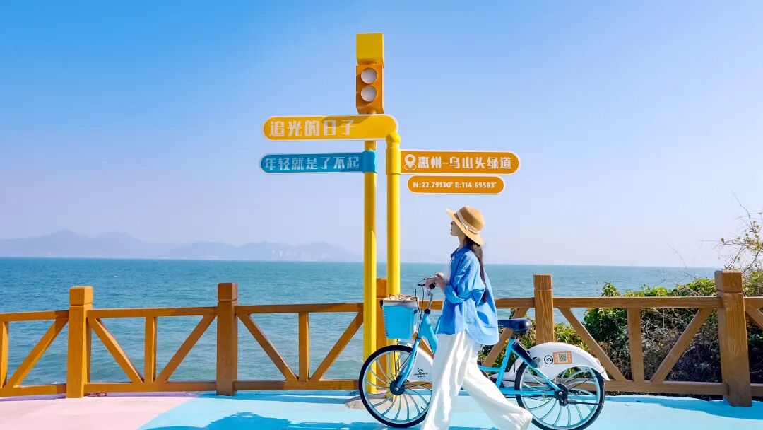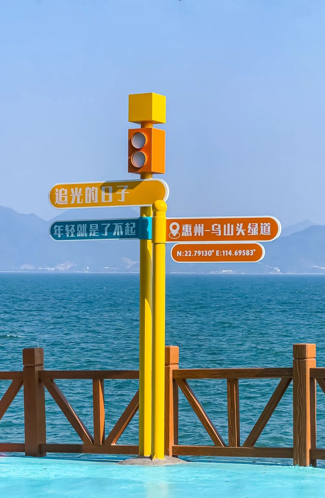 沿着绿道骑行一段路程后,乌山头路牌赫然出现!作为电视剧《追光的日子》同款打卡地,蓝白相间的路牌与碧海蓝天相映成趣,是徒步途中必拍的合影点位。
