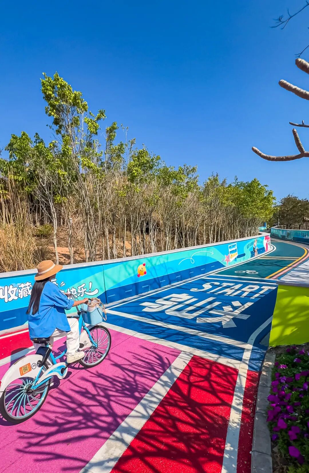 公园有便利店、租车服务和冲凉房等,大家可以在沙滩上体验赶海的乐趣,也可以骑上自行车到绿道上感受“一半青山一半海”的绝景。