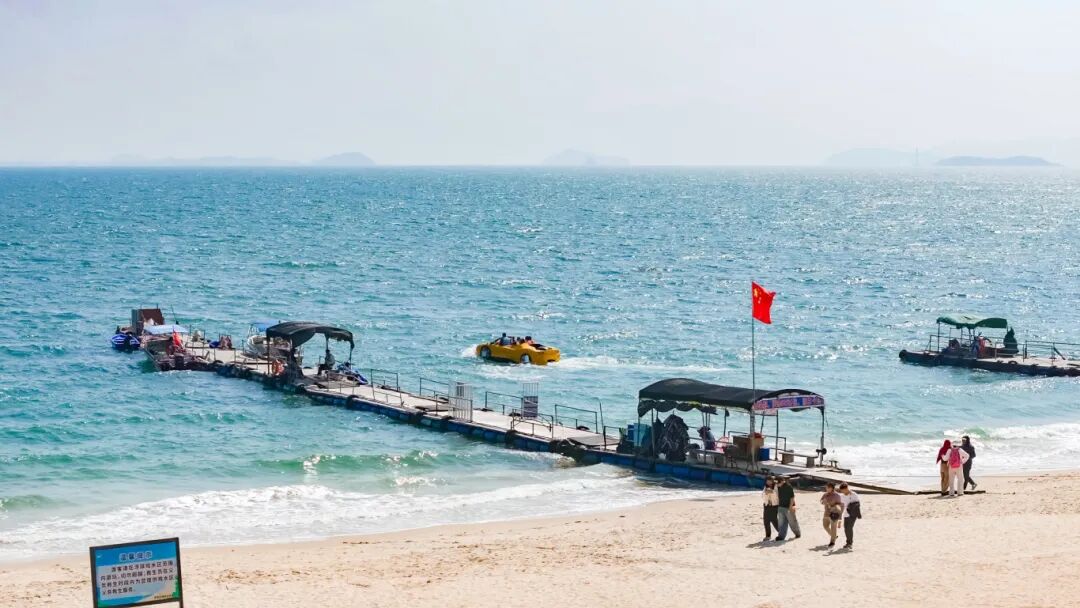 这片1800米长的月牙形沙滩,沙质细腻如奶粉,海水清澈见底,中央泛着银白色光泽,被游客称为“大亚湾蓝色马尔代夫”。