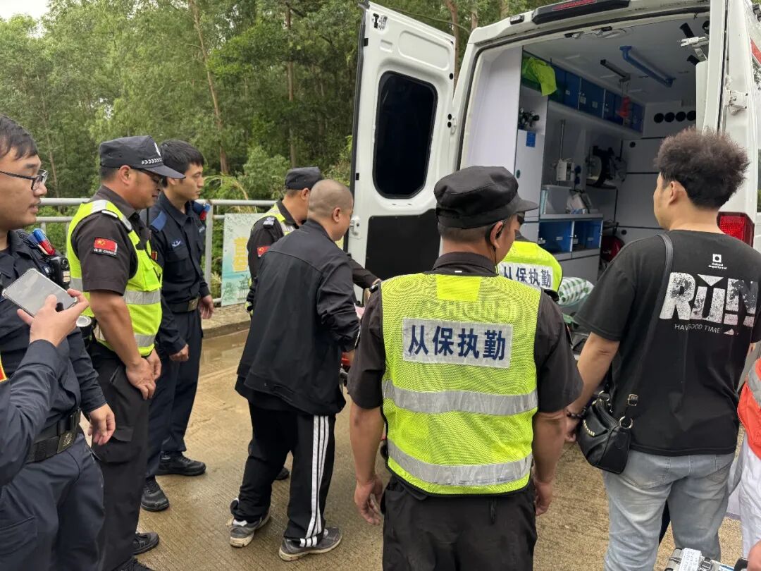 接报后,指挥部立刻启动应急处置机制,组织现场医疗保障点的街口街社区卫生服务中心医务人员和安保人员携带救援设备赶赴现场,对老人进行初步检查,发现为心脏骤停并立即进行紧急抢救,现场工作人员则及时疏散周围群众,为救援开辟通道。老人意识恢复清醒后,现场公安、医护人员、志愿者通力合作,将老人用担架安全又迅速地抬下山,由救护车转送至南方医科大学第五附属医院开展后续诊疗,指挥部还同步协调从城铁骑进行全程护送。