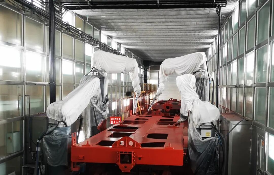 此外,广东创智还拥有用于轨道交通装备的涂装设备,开发适用于铁路货运列车整车厢油漆涂装生产线,具有自动化程度高、生产效率高、涂层质量好、安全性好、环保等特点,为高铁车体穿上量身定制的“防护服”。