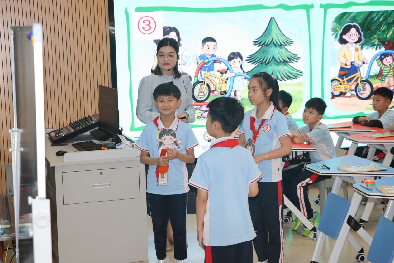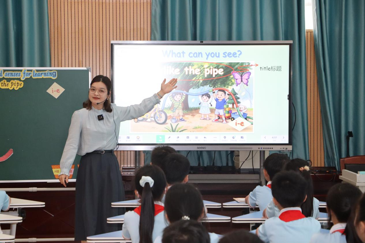 吴老师利用AI创设了《I like the pipe》为主题的英语语音绘本教学,灵活地将i-e字母发音的规则融入核心词汇和核心句型学习,通过绘本人物的互动情境,学生在“看绘本、学单词、练句型、演角色”的过程中,夯实语音基础,强化语言表达能力,打造了一节“有趣、有用、有温度”的英语语音绘本课堂。