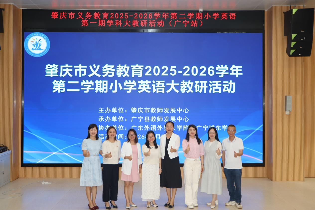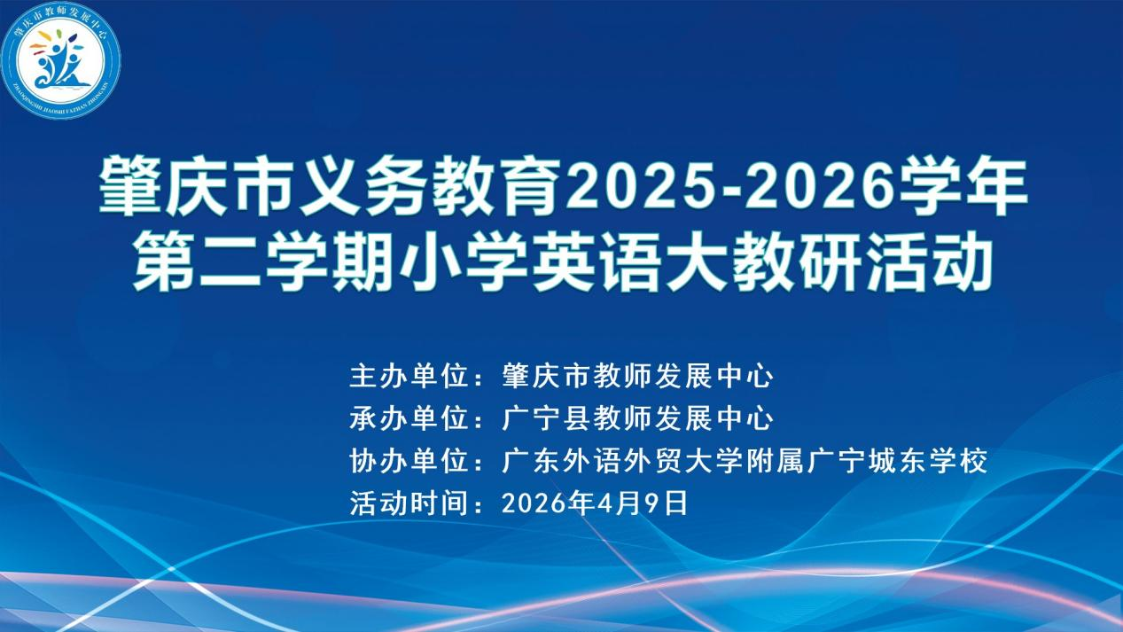 4月9日,由肇庆市教师发展中心主办,广宁县教师发展中心承办的肇庆市义务教育 2025-2026学年第二学期小学英语大教研活动在广东外语外贸大学附属广宁城东学校成功举办。