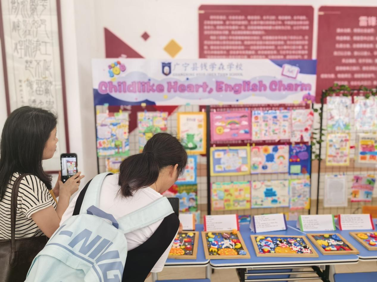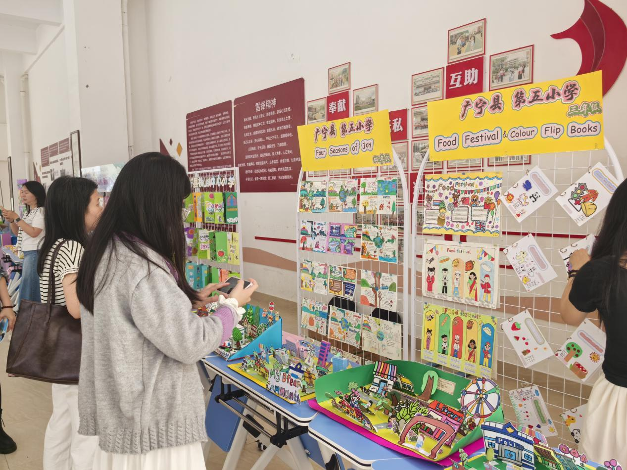 活动前,老师们参观了广宁县小学英语单元主题项目式学习优秀学生作品展:精美的英语手抄报、充满童趣的英语绘本制作、别出心裁的手工贺卡,还有绘本翻翻书、手工模型、黏土创意空间站等等,孩子们用画笔和创意编织出一个个奇妙的英语世界!这些作品不仅展现了孩子们扎实的英语基础,更体现了他们无限的创造力和想象力。
