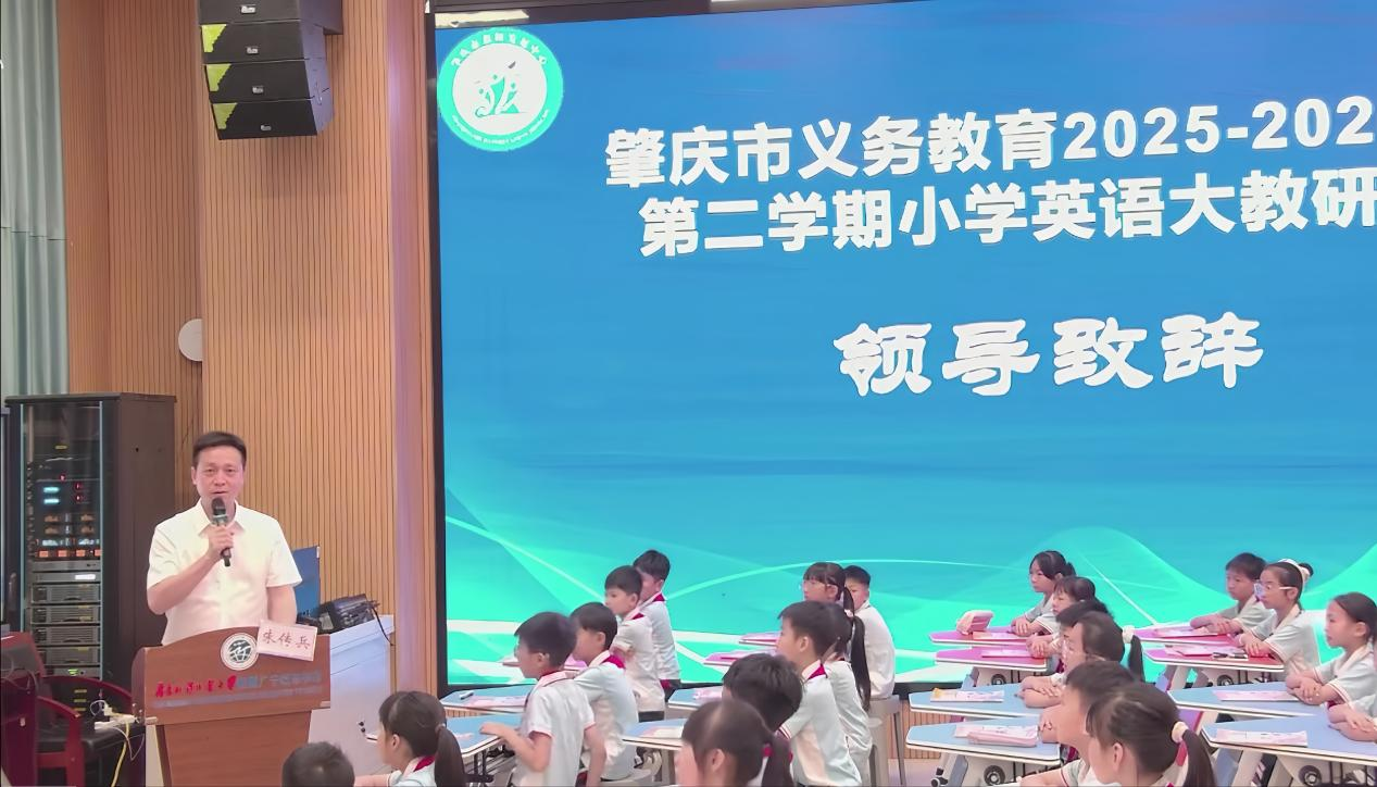 活动伊始,广东外语外贸大学附属广宁城东学校校长朱传兵作了热情洋溢的致辞。他强调英语教学是小学教育的重要组成部分,更是培养学生国际视野、跨文化沟通能力的关键载体,他还勉励老师们要以此次教研活动为契机,不断学习、交流、创新,提升教育教学水平。
