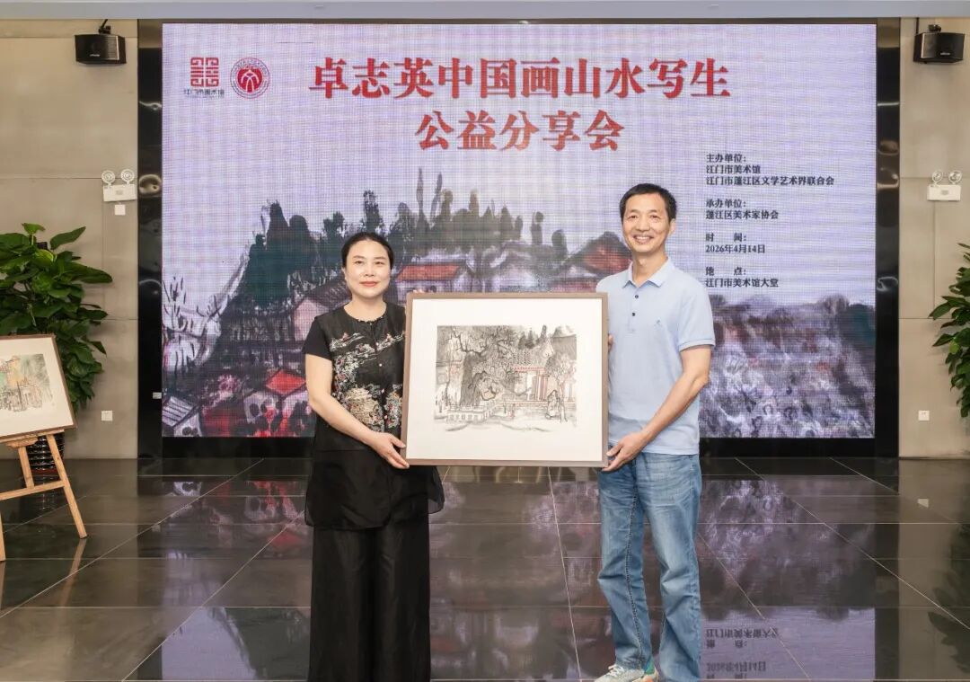 4月14日上午,由江门市美术馆、江门市蓬江区文学艺术界联合会主办,江门市蓬江区美术家协会承办的“美术馆大讲堂——卓志英中国画山水写生分享会”圆满举行。本次活动是“美术馆大讲堂”系列学术活动的重要组成部分,旨在邀请国内优秀艺术家来江门分享创作经验,促进本地美术工作者与外地艺术家的学术对话,推动中国山水画艺术的传承与创新。