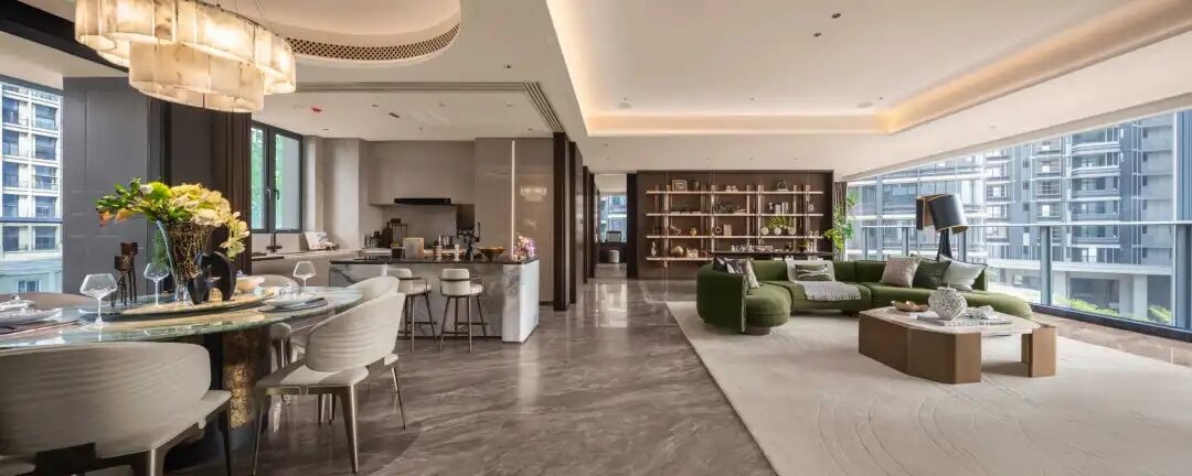 进入室内,代表团实地参观了热销中的建面约173㎡和143㎡主力户型,以及新推出的建面约227㎡展示样板间。项目采用迭代新规设计,约3.1至3.3米的层高让空间感从容舒展。室内配置了AEG、日立、爱迪士等国际品牌,客厅背景墙用了艺术岩板和石材(仅227户型)。华为鸿蒙智家系统和智慧安防系统覆盖全屋,从天使眼到智能门锁、高空抛物监控、电梯安全监控,全天候运行。代表团对项目在功能分区布局、采光通风设计及居住动线规划等方面的创新实践进行了细致考察,并就不同面积段产品的客群定位与使用场景进行了现场交流。