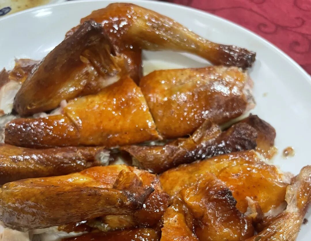 位于南沙旧镇的辉记烧鸡,凭借明火现烤的技艺赢得街坊口碑。鸡皮酥脆可口,鸡肉嫩滑多汁,咸香酱汁入味,每一口皆是经典广式烧味的醇正。