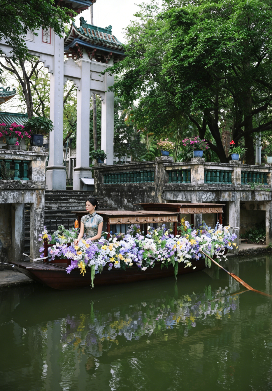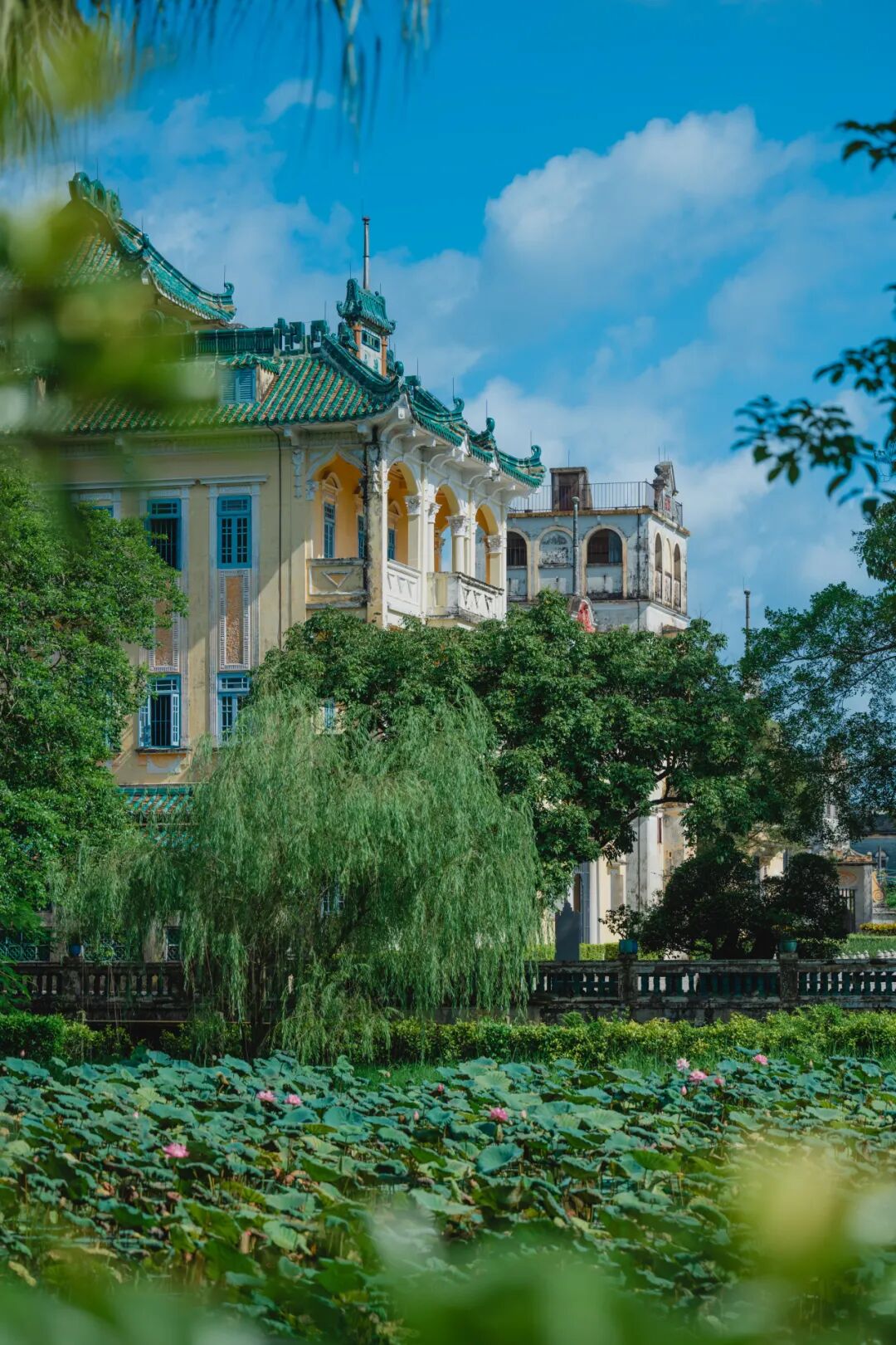 踏入立园,仿佛穿越回民国侨乡。中西合璧的园林里,处处是复古风雅的景致。花藤亭下繁花似锦,码头花船轻摇碧波,炯庐墙绘藏着侨乡故事——随手一拍,都是大片。