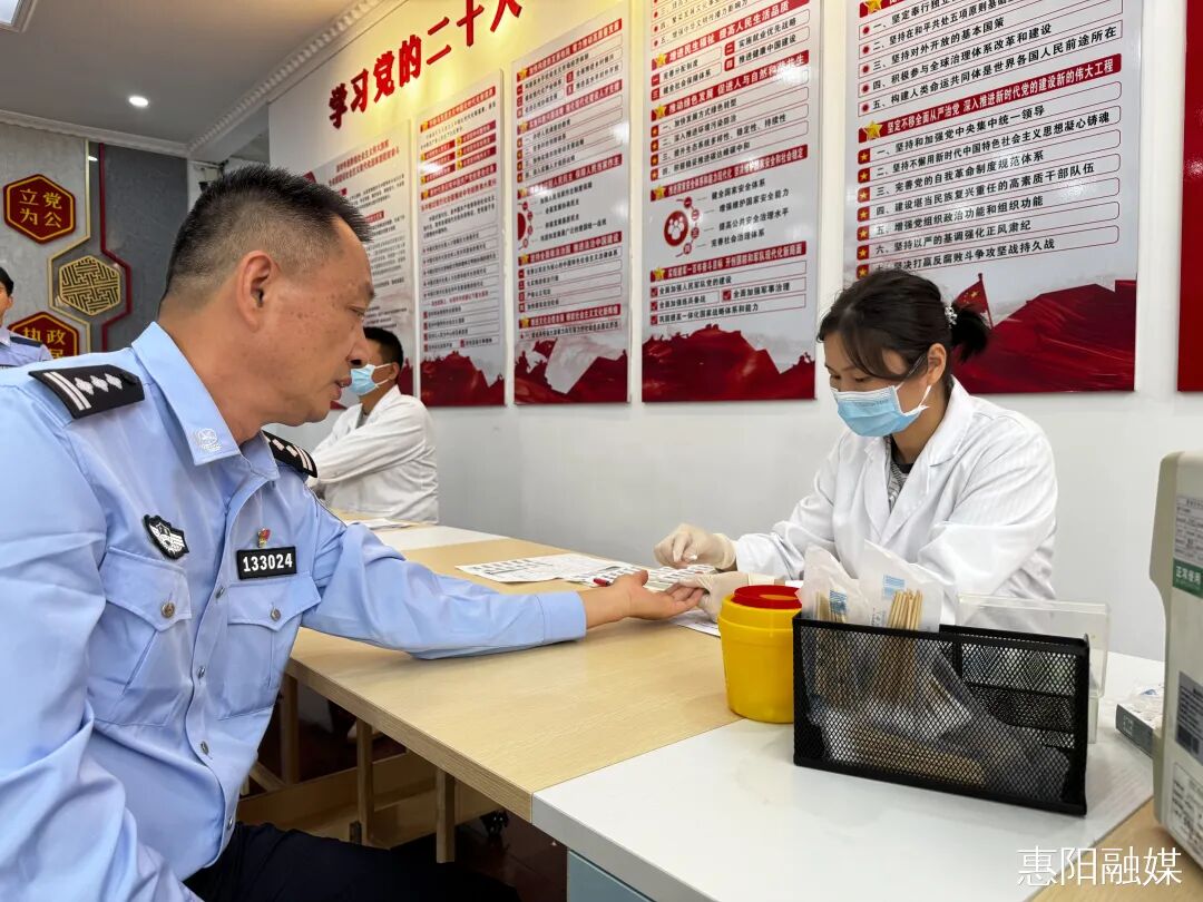 4月9日上午,惠阳公安献血月活动在分局大院和巡特警大队同步举行,警务人员纷纷挽起袖子,以热血传递爱心。当日累计献血量达22100毫升,用热血践行“人民公安为人民”的初心。