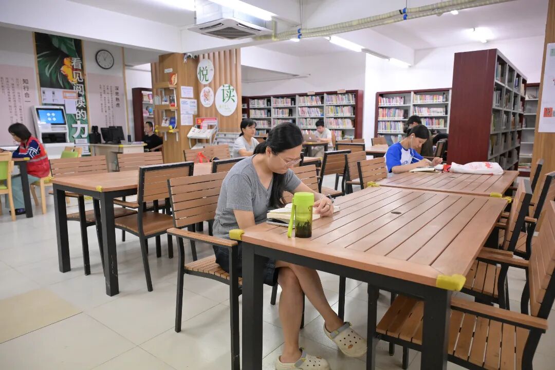 书香浓郁的图书馆里,居民沉浸式阅读